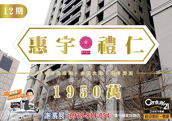 【惠宇禮仁】3房2廳2衛1廚 → 1950萬