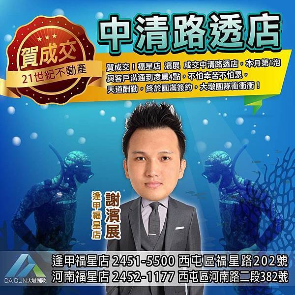 福星店 濱展 成交中清路透店,本月第1泡